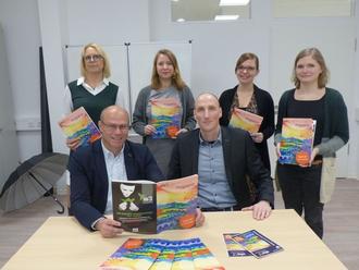 Freuen sich über ein buntes Programm in neuen Räumen: v.l. vorne vhs-Dezernent Jörg Kratkey, vhs-Leiter Dr. Timm Feld, hinten v.l. Nicole Peter, Annika Wolter, Stephanie Plachta und Dr. Sarah Präßler (Foto: Stadt Wetzlar)