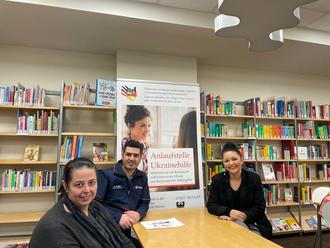Sylvia Beiser, Leiterin der Stadtbibliothek, Mohamad Osman, Leiter des Malteser Integrationsdienstes und Anna Kaczmarek-Kolb, Leiterin des Koordinationsbüros für Jugend und Soziales, setzten den Startpunkt der Anlaufstelle. (Foto: privat)