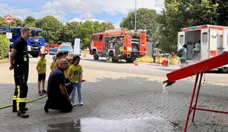 Etwa 50 Vorschulkinder aus den städtischen Kindertagesstätten „Bärenland“ (Münchholzhausen) und „Abenteuerland“ (Dutenhofen) trafen sich am Ende Juni zum Abschluss der dritten Blaulichtwoche auf dem Festplatz in Wetzlar-Münchholzhausen. In den Wochen davor hatten sie Einblicke in die Tätigkeit von Feuerwehr, Polizei, DLRG und dem Deutschen Roten Kreuz erhalten. Die Kinder lernten, wie sie sich bei einem Notfall richtig verhalten, übten Erste Hilfe und erfuhren viel über den sicheren Weg zu Fuß. Dabei erklärte ihnen der Schutzmann vor Ort von der Polizei, wie sie sich im Straßenverkehr sicher bewegen. Einen großen Teil der Blaulichtwoche nahm die Brandschutzerziehung mit der Freiwilligen Feuerwehr Wetzlar ein. Die Kinder lernten, wie man Brände vermeidet, sich in Gefahrensituationen richtig verhält und bekamen die Notrufnummer sowie die persönliche Schutzausrüstung der Feuerwehr erklärt. Das spielerische Baderegeltraining wurde vom DLRG durchgeführt. Attraktion für die Kinder auf dem Abschlussfest waren die Einsatzfahrzeuge der Hilfsorganisationen, die vor Ort gezeigt und erklärt wurden.