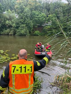 Die Feuerwehr Wetzlar setzte drei Rettungsboote und eine Drohne ein, um nach vermissten Personen zu suchen. Dabei konnten zwei Kanus und zwei Rettungswesten geborgen werden.