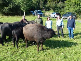 Freuen sich über tierische Landschaftspfleger: v.l. Landwirte Nick und Andreas Henrich, Kristin Teich (Umweltamt), Stadtrat Kortlüke und Landwirt Mario Kräuter (Foto: Stadt Wetzlar)