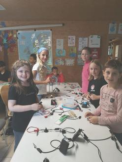 Im Rahmen des Sommerferienprogrammes des Jugendamtes der Stadt Wetzlar haben 15 Jungen und Mädchen an dem Workshop,,Mir geht ein Licht auf! Versuche mit Elektrizität“ in Dalheim teilgenommen. Ziel des Workshops war es, das Grundprinzip des Stromkreises zu vermitteln. Die Kinder lernten, dass Strom Licht, Bewegung und Töne erzeugen kann. Hierfür wurde zuerst mit Glühbirnen experimentiert, welche am Ende des ersten Abschnitts in einer großen Reihenschaltung angeknipst wurden. Im zweiten Teil des Workshops lernten die Teilnehmer, dass Strom einen Motor mit Propeller in Bewegung bringen kann. Auch ein Türsummer wurde angeschlossen und die Leitfähigkeit unterschiedlicher Materialien wie Spülschwämme aus Stahlwolle, Kupfer oder Haare ausprobiert. Am Ende des Tages konnten die Kinder draußen Stahlwolle mit einer Batterie anzünden, was für große Begeisterung sorgte.