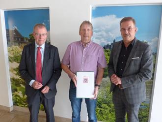 v.l. Amtsgerichtsdirektor Lauber-Nöll und Oberbürgermeister Wagner ehrten Burkhard Weber (Mitte) (Foto: Stadt Wetzlar)