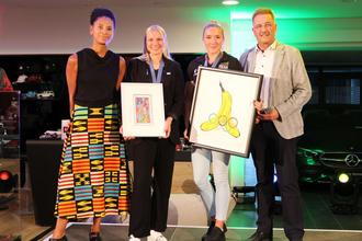 Atmosphärisch eingeleitet mit dem Finallauf von Paris, ließen die beiden geehrten Sprinterinnen Lisa Mayer und Rebekka Haase den Wettkampf, die Emotionen und den Rummel danach Revue passieren. „Das ist immer noch surreal. Wir bekommen diese große Resonanz mit. Uns sprechen seitdem sehr viele Menschen an, das ist mir so in meinem Leben auch noch nicht passiert, das ist total schön“, bekannte Haase. „Wir alle haben unglaublich viel investiert, mussten auch einige verletzungsbedingte Rückschläge einstecken. Nach einer so langen und schweren Reise kann es für uns keine schönere Belohnung als eine olympische Medaille geben“, so Mayer. Die Athletinnen bekamen anschließend Geschenke vom Sportkreises Lahn-Dill, übergeben von Vorstandsmitglied Jochen Horz, sowie jeweils Kunst-Präsent in Form eines Gemäldes durch Jacqueline Wood, Leiterin der „Galerie am Dom“, und Oberbürgermeister Wagner, überreicht. Geehrt wurde ebenfalls Kevin Kranz vom Sprintteam Wetzlar, der mit der 4x100-Meter-Staffel der Männer bei der Weltmeisterschaft in Rom in diesem Sommer ebenfalls Bronze gewann.
