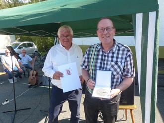 Stadtverordnetenvorsteher Udo Volck (l.) übergab die Ehrenplakette an den Vorsitzenden des BC 1921 Nauborn, Uwe Lang (Foto: Stadt Wetzlar)