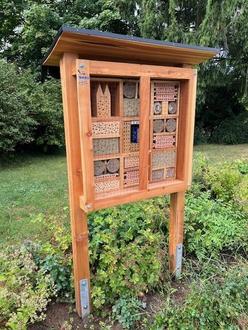 Am Eingang des Neuen Friedhofs wurde kürzlich eine neue Insektennisthilfe aufgestellt. Die Maßnahme ist eine Initiative des NABU Stadtverbandes und wurde aus Mitteln des Verbandes finanziert. Der Aufbau wurde vom Berufsfortbildungswerk des DGB in Garbenheim durchgeführt. In enger Abstimmung mit dem Stadtbetriebsamt und dem Amt für Umwelt und Naturschutz soll sie einen Beitrag zur Förderung der Biodiversität auf dem Gelände des Friedhofs leisten. Insektennisthilfen bieten Wildbienen, Käfern und anderen nützlichen Insekten einen geschützten Lebensraum und einen sicheren Fortpflanzungsort. Gerade in Zeiten des fortschreitenden Insektensterbens tragen solche Maßnahmen dazu bei, um dem Verlust an Artenvielfalt entgegenzuwirken. „Mit der neuen Nisthilfe haben wir am Neuen Friedhof eine tolle Förderung für unserer heimische Artenvielfalt geschaffen, die wir mit weiteren Biodiversitätsmaßnahmen Stück für Stück ausbauen wollen“, erklärte Umweltdezernentin Andrea Biermann (Grüne). Frank Rudolph vom NABU Stadtverband berichtete: „Es ist geplant weitere Insektennisthilfen in allen Stadtteilen aufzustellen“.