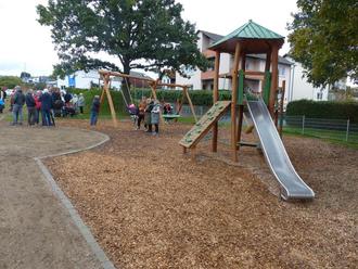 Der von vielen Anwohnern in Wetzlar-Hermannstein ersehnte neue Kinderspielplatz am Rande des Neubaugebietes Rotenberg ist am Dienstag (24. Oktober) von Bürgermeister Andreas Viertelhausen (FW) eröffnet worden. Die Fertigstellung habe sich etwas verzögert, so Viertelhausen, dafür sei eine besonders große und spannende Spielfläche entstanden. Der Spielplatz liegt zwischen Großaltenstädter Straße und Festplatz in Nachbarschaft zum städtischen Kindergarten Mullewap. Viertelhausen lobte die Ausstattung des Platzes, der über vielfältige Spielgeräte für jede Altersstufe verfüge. Die rund 2.000 Quadratmeter große Fläche biete nicht nur Spielmöglichkeiten, sondern auch Sitzgelegenheiten zum Verweilen für Eltern und Begegnung im Stadtteil. Somit sei ein gelungener Abschluss des Baugebietes Rotenberg erfolgt. Viertelhausen dankte dem Bauunternehmen Rotenberg GmbH, die den Spielplatz errichtet hat.