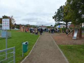 v.l. Ferat Pamukci, Matthias Neeb (Rotenberg GmbH) und Bürgermeister Viertelhausen übergaben den Spielplatz unter Beteiligung zahlreicher Kinder, Eltern und Anwohner seiner Bestimmung (Fotos: Stadt Wetzlar)