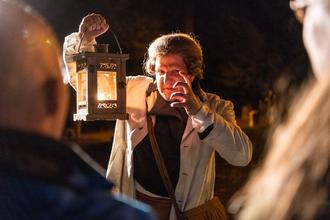 Die Teilnehmer folgen Anton Matthias Sprickmann über die alten Friedhöfe Wetzlars und hören sein grausiges Erlebnis: Wer war die dunkle Gestalt zwischen den Gräbern? Wessen Stimme spricht seither aus Sprickmanns Kopf? Und hat wirklich ein braver Jurist die schauerlichste aller Schauerballaden verfasst? Gespielt wird der Geisterbeschwörer von Sven Bühler.