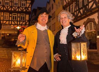 Durch verwinkelte abendliche Altstadtgassen folgen die Teilnehmer den Schauspielern und erfahren amüsante Anekdoten und Tratsch. Stadtführer Karl-Otto Brenner und Dieter Dörfler spielen im historischen Gewand und entführen die Besucher in die Zeit des ausgehenden 18. Jahrhunderts.