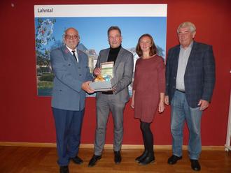 v.l. Horst Kasperski (Malteser), Oberbürgermeister Wagner, Isabell (Kulturamt) und Partnerschaftsdezernent Karlheinz Kräuter rufen zu Spenden auf (Foto: Stadt Wetzlar)