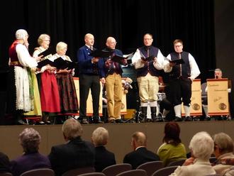 Für schmissige Klänge sorgte die Blasmusikgruppe „Egerländer Schmankerln“ mit Polkas, Märschen und Walzermusik. Leisere Töne, teils romantisch, stimmte das Gesangsduo Löffler-Wilhelmi an, während der Erk’sche Männergesangverein traditionelle Chorlieder zu Gehör brachte. Dabei durfte auch das wohl bekannteste Lied mit ostpreußischen Wurzeln „Ännchen von Tharau“ nicht fehlen. Besondere optische Akzente setzte der Heidelberger Sing- und Spielkreis, dessen Sänger in Siebenbürger und Egerländer Trachten auftraten. Der starke Beifall am Schluss zeigte, dass dem Publikum diese Mischung des Liederabends gefallen hat.