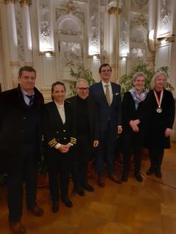 v.l. Bernard Hokmayan (Stadtrat für Partnerschaften), Violaine Démaret, Claude Nahoum, Frank J. Kontz, Clarissa Duvigneau, Sabine Eouagnignon-Grote (Honorarkonsulin der Bundesrepublik Deutschland für Vaucluse und Gard). (Foto: Philippe Martin)