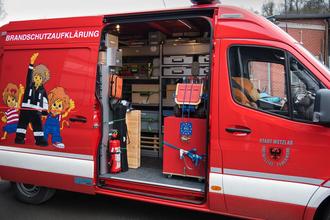 Das „Löwenmobil“ hat einen Wert von rund 100.000 Euro und viele hilfreiche Dinge an Bord, mit denen man experimentieren und ausprobieren und Interessantes zum Thema „Feuer“ entdecken kann.