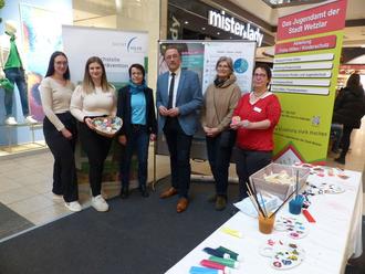 Vertreterinnen von Jugendamt und Suchthilfe (mit Oberbürgermeister Wagner) machten auf Hilfsangebote für Kinder aus Suchtfamilien aufmerksam (Foto: Stadt Wetzlar)