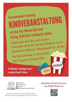 Anlässlich des Weltfrauentages laden der Mädchenarbeitskreis IVAM (Initiative zur Vernetzung der Arbeit mit Mädchen und jungen Frauen) und das Jugendbildungswerk der Stadt Wetzlar Mädchen zwischen 10 und 21 Jahren zu einem Kinobesuch in den Film „Mission Ulja Funk“ ein. Am Freitag, 10. März, geht es gemeinsam mit dem Bus ins Kinopolis nach Gießen, wo ein eigener Kinosaal reserviert ist. Treffpunkt ist um 16 Uhr auf dem Parkplatz Bachweide. In dem Film findet eine starke Mädchenfigur zu sich selbst und schafft es, sich innerhalb der Familie und der Community, in der sie sich mit der Familie bewegt, zu behaupten. Die Veranstaltung wird durch das Förderprogramm „Aufholen nach Corona“ unterstützt und ist kostenfrei, Popcorn und Getränk inklusive.