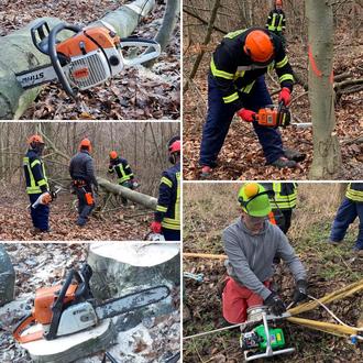 Am 04. Februar absolvierte die Feuerwehr Wölfersheim einen Übungstag an der Motorkettensäge im Berstädter Markwald. Entsprechend gut ausgerüstet starteten alle Teilnehmer gegen 8:00 Uhr in Wölfersheim Richtung Berstädter Markwald. Nach Ankunft und Sichtung der Umgebung erfolgte dann nach kurzer Einweisung die ersten Übungen mit der Motorkettensäge. Verschiedene Schnitttechniken, wie Stech-/ und Fächerschnitt mit ein-/auslaufender Kette wurden an kleinen Baumklötzen ausgeführt. Danach ging es in ein Waldstück mit kleineren „hängenden“ Bäumen, um auch diesen für die Feuerwehr häufig vorkommenden Fall üben zu können. Hierzu kam eine tragbare Motorseilwinde zum Einsatz. Nach der sogenannten Baumbeurteilung wurden die notwendigen Schnitte unter Anleitung vorgenommen und die hängenden Bäume mit der Motorseilwinde sicher gezogen und schließlich niedergelegt. Schnell ging der Vormittag vorüber. In der Mittagspause war bestens für das leibliche Wohl gesorgt. Gestärkt fuhren die Kameraden nun in ein anderes Waldstück, in dem einige Bäume mit verschiedenen Techniken gefällt werden konnten. Auch hier wurden die einzelnen Schritte der Fällung, insbesondere die sicherheitsrelevanten Themenpunkte, nochmals besprochen. Die im Anschluss durchgeführten Fällungen der Bäume verliefen alle erfolgreich. Zudem konnte nun an einigen gefällten Stämmen das Entasten und Zerlegen der Baumkrone mit den verschiedenen Schnitttechniken erneut geübt werden. Gegen 16:00 Uhr wurde die Ausrüstung eingeräumt und die Kameraden traten die Rückfahrt bei sonnigem Wetter an. In Wölfersheim angekommen erfolgte nun noch die Reinigung der Fahrzeuge und Ausrüstung. Gegen 17:30 Uhr ging ein erfolgreicher Übungstag zu Ende. Ein besonderer Dank gilt dem Organisator Sebastian Lang, der im Vorfeld die notwendigen Absprachen mit Frau Liebelt, der zuständigen Försterin und Herrn Diefenbach, dem Markvorstand, vorgenommen hatte. An dieser Stelle möchte sich die Feuerwehr Wölfersheim bei Frau Liebelt und Herrn Diefenbach nochmals bedanken, die diesen lehrreichen und intensiven Übungstag so ermöglicht haben.