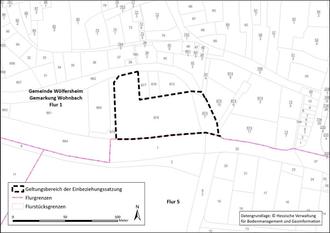 Der räumliche Geltungsbereich der Einbeziehungssatzung umfasst eine Größe von ca. 0,4 ha und enthält folgende Flurstücke: Nr. 882 tlw., 878 und 874/7 tlw., die in der Flur 1 der Gemarkung Wohnbach liegen.