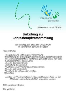 Am Dienstag, den 24.03.2026 um 20:00 Uhr findet unsere Jahreshauptversammlung statt.