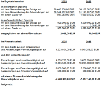 Der Haushaltsplan für das Haushaltsjahr 2025 und 2026 wird