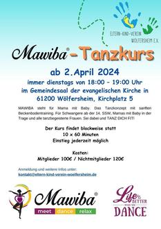 MAWIBA steht für Mama mit Baby. Das Tanzkonzept mit sanften Beckenbodentraining. Für Schwangere ab der 14. SSW, Mamas mit Baby in der Trage und alle tanzbegeisterte Frauen. Sei dabei und TANZ DICH FIT!