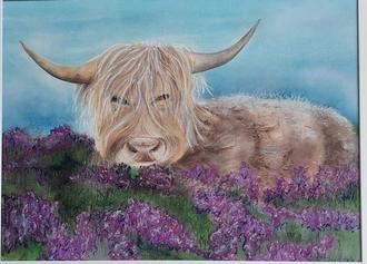 Eine Pastellzeichnung mit dem Titel „Bulli genießt entspannt den Frühling“ von Karin Sawitzky, erste Vorsitzende der Wölfersheimer Künstlerpalette e.V.