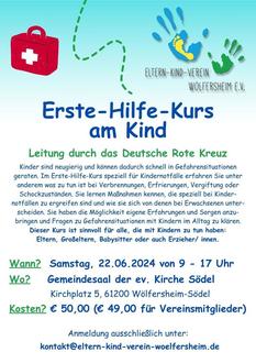 Kinder sind neugierig und können dadurch schnell in Gefahrensituationengeraten. Im Erste-Hilfe-Kurs speziell für Kindernotfälle erfahren Sie unter anderem was zu tun ist bei Verbrennungen, Erfrierungen, Vergiftung oderSchockzuständen. Sie lernen Maßnahmenkennen, die speziell bei Kindernotfällen zu ergreifen sind und wie sie sich von denen bei Erwachsenen unterscheiden. Sie haben die Möglichkeit eigene Erfahrungen und Sorgen anzubringen und Fragen zu Gefahrensituationen mit Kindern im Alltag zu klären.