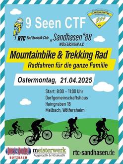 Der RTC-Sandhasen ´88 Wölfersheim e.V. führt am Ostermontag den 21.April 2025 seine 9 -Seen CTF mit Start am Dorfgemeinschaftshaus in Melbach durch. Gestartet kann zwischen 8:00 bis 11 Uhr.