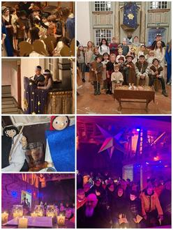 Später fand die Christmette in der Marktscheune, in Zusammenarbeit mit den Kirchengemeinden Södel und Melbach statt. Bettina Skottke gestaltete, zusammen mit Gundula Kellinger, den Gottesdienst musikalisch. Pfarrer Stephan predigte und Kirchenvorsteherinnen und Vorsteher der drei Kirchengemeinden lasen die Weihnachtsgeschichte. Vor und nach dem Gottesdienst gab es heißen Glühwein und Tee. Auch hier fanden ca. 100 Besucherinnen und Besucher den Weg in die Marktscheune.