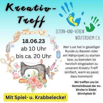 Der nächste Termin für unser Kreativ-Treff steht fest. Diesmal treffen wir uns am Sonntag den 18.06.2023, wer also ein Projekt starten oder ein angefangenes fertig stellen möchte, egal ob aus Papier, Stoff, Wolle..... Oder einfach in Gesellschaft sein möchte kann uns gern Besuchen kommen wir freuen uns! Wenn Du Fragen hast dann gern per Mail an: kontakt@eltern-kind-verein-woelfersheim.de