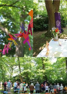 Bei schönem Sommerwetter konnten wir diesmal das Pfingstfest mit einem Familiengottesdienst im Singberg feiern. Viele Kigo Kinder waren mit ihren Familien dabei, aber auch die Älteren haben sich an der Bastelaktion „Wofür brennt mein Herz?“ beteiligt. Die Herzen zierten im Anschluss die bunte Leine. Vielen Dank an das Kindergottesdienst-Team.