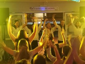 Die Schülerinnen und Schüler der Klassen 5 und 6 haben das letzte lange Wochenende des Schuljahres gebührend eingeläutet: Gemeinsam wurde bei der zweiten SV-Disco für unsere 5. und 6. Klassen zwei Stunden lang getanzt und gelacht. Die Mensa war kaum wiederzuerkennen - abgedunkelt und Dank Herrn Langsdorf mit Lichteffekten und DJ-Area versehen der perfekte Ort für eine Disco. Für die entsprechende Abkühlung durch Getränke und neue Feier-Energie durch leckere Snacks sorgte der diesjährige Abi-Jahrgang mit einem großen Buffet.