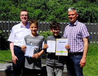 Der stellvertretende Schulleiter Thorsten Rohde überreichte den beiden Schülern Preise und Siegerurkunden und wünschte ihnen für die weiteren Wettbewerbsteilnahmen viel Erfolg.