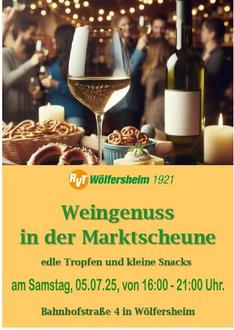 Der RVT Wölfersheim lädt zum Weingenuss in der Marktscheune ein. Das Sortiment reicht von trocken und lieblich bis hin zu fruchtig und herb. Nicht alkoholische Getränke und kleine Snacks runden das Angebot ab. Wir freuen uns auf ihren Besuch.