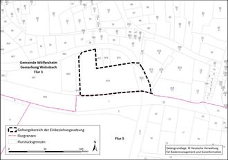 Der räumliche Geltungsbereich der Einbeziehungssatzung umfasst eine Größe von ca. 0,41 ha und enthält folgende Flurstücke: Flurstücke Nr. 882 tlw., 878 und 874/7 tlw., die in der Flur 1 der Gemarkung Wohnbach liegen.