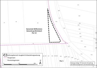 Der räumliche Geltungsbereich des Ausgleichs zur Einbeziehungssatzung umfasst eine Größe von ca. 1,8 ha und enthält folgendes Flurstück teilweise: Flurstück 49 (tlw.), die in der Flur 12 der Gemarkung Wohnbach liegen.