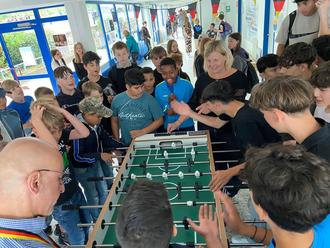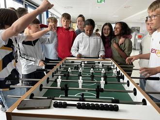 In den vergangenen drei Wochen nahmen 60 Schülerinnen und Schüler der Jahrgänge 5 bis 8 an der Tischfußball-Europameisterschaft 2024 teil. In Zweier- oder Dreierteams vertraten sie die 24 teilnehmenden Länder und kämpften um den begehrten Titel. Leider schied das deutsche Team bereits in der Vorrunde aus.