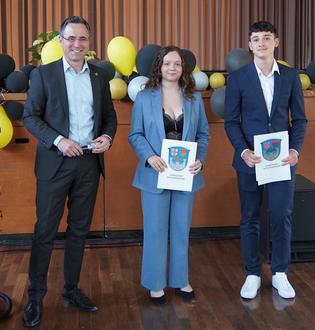 Ehrung von Melina Eckardt für ihr Engagement im Schulsanitätsdienst und Christos Christoforidis für den besten Realschulabschluss (1,3)