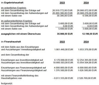 Der Haushaltsplan für die Haushaltsjahre 2023 und 2024 wird