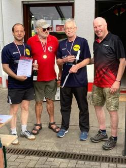Wir wurden von unseren Freunden aus Nieder-Erlenbach zu ihrem 65jährigen Jubiläum eingeladen. Für dieses Jubiläum haben sich unsere Freunde ein spezielles Doppelturnier ausgedacht. Die TT- Tische wurden in der Mitte auf beiden Seiten durch einen Stuhl verlängert und pro Tischhälfte mit einem normalen TT-Netz ausgestattet. Der so entstandene Graben in der Mitte der Spielfläche musste also im Spiel überwunden werden. Zu diesem Turnier wurden acht Doppel aus unterschiedlichen Vereinen eingeladen. Wir nahmen mit dem Doppel Klaus Hauptmann und Boris Dombrow teil. Nach einer kurzen Eingewöhnungszeit kam unser Doppel immer besser mit dem speziellen Tischaufbau zurecht. Auch gegen die Doppel mit Heimvorteil und den anderen spielstarken Gästedoppel haben wir uns konzentriert und im richtigen Moment mit etwas Glück durchgesetzt. Wir blieben gegen alle sieben gegnerischen Doppel ungeschlagen und holten uns den 1.Platz. Im Anschluss wurde auf dem sehr schön gelegenen Sportgelände mit Vereinsheim gefeiert. Wir hoffen, dass wir unsere Freunde aus Nieder-Erlenbach auch bald wieder bei uns zu einem kleinen Tischtennisturnier begrüßen können.