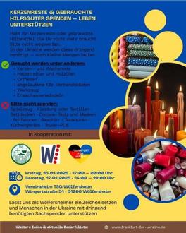 In Kooperation mit der Initiative „Frankfurt for Ukraine“ und der Gemeinde Wölfersheim starten wir eine Sammelaktion für die Opfer des Krieges in der Ukraine.