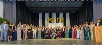 Bärbel Armenat als Schulelternbeiratsvorsitzende und Astrid Möller-Seeling als Mitglied des Vorstands des Fördervereins hoben die Leistungen des Jahrgangs hervor und sprachen den Schülerinnen und Schülern sowie den Eltern ihre Glückwünsche für den erfolgreichen Schulabschluss aus. Der Jahrgang, der den Abschluss am Samstag, dem 09. Juli 2022 auf dem Abiball unter dem Motto „Goldene Zwanziger“ feierte, hat in den vergangenen zwei Jahren viel Leistungsbereitschaft und Anstrengung gezeigt. Auch wenn die 2020er Jahre nicht unbedingt golden gestartet sind, wünschten alle Redner*innen den Abiturientinnen und Abiturienten einen guten Start in das Leben nach der Schule. Janina Köhler als Leiterin der Oberstufe wies abschließend noch auf den hervorragenden Gesamtschnitt des Jahrgangs von 2,18 hin und sagte, dass es 20 Abiturientinnen und Abiturienten gelungen sei, eine Eins vor dem Komma zu erreichen. Diese Leistungen fußen zum einen von guten Gesamtleistungen der einzelnen Kurse, zum anderen aber auch auf herausragenden Einzelleistungen der Abiturientinnen und Abiturienten.