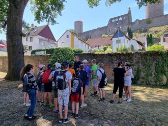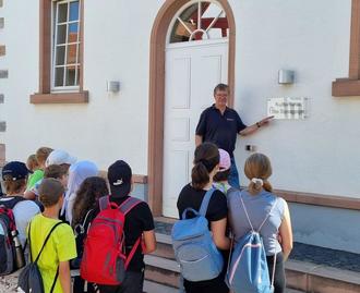 Die Singbergschule Wölfersheim führte in dieser Woche von Montag bis Donnerstag ein Unterrichtsprojekt durch, das das jüdische Leben in der Wetterau vor und während der Zeit des Nationalsozialismus dokumentierte. Der komplette Jahrgang 6 der Gesamtschule, ca. 200 Schülerinnen und Schüler, war hier die Zielgruppe. Mit dem authentischen Hintergrund der ehemaligen Synagoge in Münzenberg wurde dafür ein Ort gefunden, der zusätzliche Empathie schuf. Als Autorin für die Lesungen konnte die bekannte Schriftstellerin Ursula Flacke gewonnen werden. Sie trug im Alten Rathaus aus dem Manuskript "1933 - Feuer!" ihres im Herbst erscheinenden neuen Jugendbuches vor. Im Zusammenhang mit den Lesungen zeigte Uwe Müller vom "Freundeskreis Burg und Stadt Münzenberg" den Kindern das verwundete Kulturhaus Alte Synagoge und erzählte ihnen die Geschichte der Familie Erwin Katz: Erwin Katz, geboren 1910, konnte Deutschland 1934 noch rechtzeitig verlassen, der größte Teil seiner Familie aber wurde in Auschwitz umgebracht. Die Schülerinnen und Schüler, jeweils zwei Klassen an einem Tag, wanderten zunächst von Wölfersheim nach Münzenberg. Danach durchliefen sie abwechselnd das Programm. Dabei wurde ihnen die Möglichkeit gegeben, Fragen zu stellen, was sie auch immer wieder taten. Dies zeigte deutlich, dass der Lehrplan des Hessischen Kultusministeriums gerade zu diesem Thema unbedingt verändert werden muss. Es ist viel zu spät, erst in der 9. und 10. Klasse, abhängig von der Schulform, damit konfrontiert zu werden.