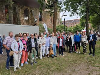 Das Ziel der diesjährigen Theaterfahrt des Fördervereins der Wölfersheimer Schulen waren wieder die Bad Hersfelder Festspiele und die Neuinszenierung des weltberühmten Musicals „A Chorus Line“! von J. Kirkwood und N. Dante mit der Musik von M. Hamlisch. Die Theaterfreundinnen und-freunde im vollbesetzten Bus, unter der organisatorischen Leitung der zweiten Vorsitzenden Christa Diether, die diese Fahrten für den Förderverein seit 37 Jahren erfolgreich organisiert, erlebten in der Hersfelder Stiftsruine eine fulminante Aufführung des Klassikers in einer Neuinszenierung. Getragen von einem hervorragenden Orchester, spielte sich ein großartiges Ensemble schnell in die Herzen des Publikums. Das Bühnenbild einer Theaterkulisse während einer Audition für ein neues Musical passte sich perfekt in die natürliche Kulisse der Stiftsruine ein. Die Idee zu „A Chorus Line“ geht auf die schwierige Situation der Tänzerinnen und Tänzer in den Musiktheatern in den USA in den 70er Jahren zurück und setzt sich kritisch mit dem erbitterten Konkurrenzkampf um einen Platz in der „Chorus Line“ einer Neuinszenierung in der damaligen Zeit auseinander. In einer Art „Seelenstriptease“ offenbaren sich persönliche Schicksale und unterschiedliche Lebensentwürfe im Existenzkampf der Darsteller. Das Stück wurde ein Welterfolg und seine Melodien zu Evergreens. Die deutsche Neuinszenierung eroberte das Publikum in Bad Hersfeld im Sturm und wurde mit begeistertem Applaus belohnt. Auch die Wölfersheimer Reisegruppe trat beeindruckt die Heimreise an. Der Vorsitzende des Fördervereins Thomas Gerlach dankte Christa Diether für die Organisation der Fahrt und versicherte, dass auch diesmal alle finanziellen Überschüsse vollständig den Wölfersheimer Schulen zugutekommen.
