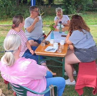 Bei herrlichem Sommerwetter nutzten die Gartenfreunde die Gelegenheit, den liebevoll gestalteten Garten zu bestaunen und sich inspirieren zu lassen. Viele neue Ideen für die eigene Gartengestaltung wurden angeregt, und auch aktuelle Gartenthemen kamen nicht zu kurz. Tipps und Erfahrungen rund um Pflanzen, Pflege und Gestaltung wurden in lockerer Runde ausgetauscht.