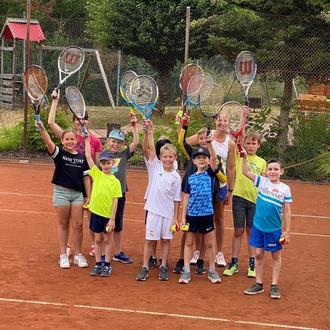Auch am Montag konnten die Ferienspielkinder in den Tennissport reinschnuppern. Nach dem Aufwärmen wurde sich an die Tennisschläger herangetastet und schließlich verschiedene Spiele und Übungen rund um den Ballsport ausprobiert.