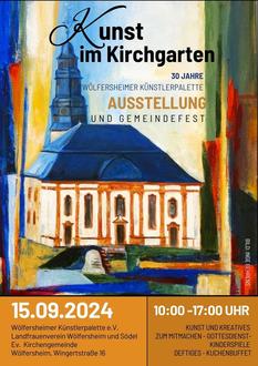 Bei dem Jubiläumsfest der Künstlerpalette, das zusammen mit dem Gemeindefest der evangelischen Kirche von Wölfersheim gefeiert wird,wünschen sich Alle viele nette Begegnungen und gutes Wetter.