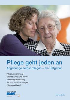 Unser Pflegeratgeber "Pflege geht jeden an" (Stand: 2019) informiert Menschen, die künftig oder aktuell Angehörige pflegen. Unser Ratgeber beantwortet die wichtigsten Fragen der Angehörigenpflege in kurzer und verständlicher Form. Die Broschüre ist kostenlos.