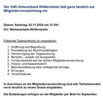 Mitgliederversammlung des VdK-Ortsverbandes Wölfersheim - Termin verschoben