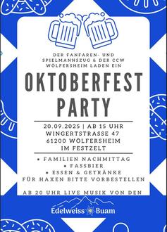Oktoberfest am 20.09.2025 an unserem Vereinsgelände am Singberg in der Wingertstraße 47!